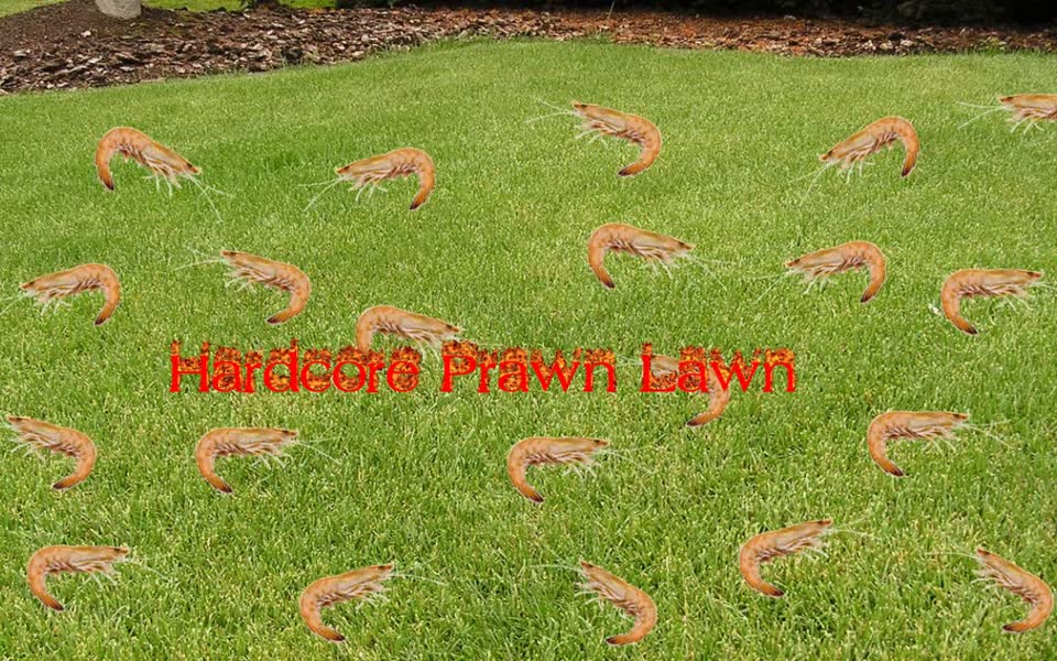 hardcoreprawnlawn.comofflineSpinning prawn-lawn logo over a lawn full of prawns.